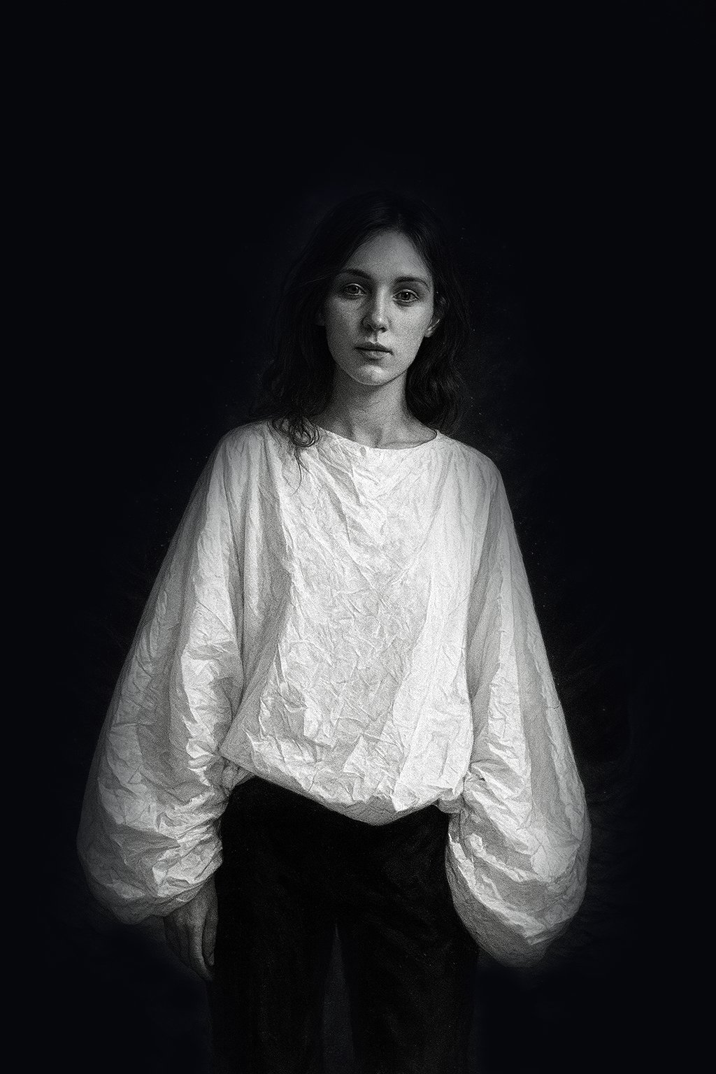 Vyrobená z ikonického materiálu – ultralehkého, odolného a recyklovatelného vlákna, které připomíná jemně zmačkaný papír. V módě působí étericky, architektonicky a futuristicky zároveň.